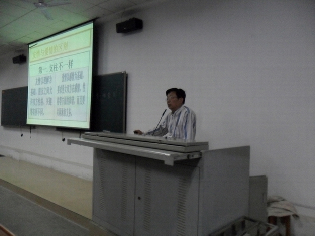 最后,卢教授告诉在场同学感情挫折我们该怎么做?要提升自我心理,逐渐走向成熟,要有正确的价值观、人生观和独立的人格、健全的理性;要学会体察、关怀与尊重他人;要培养与异性的交往能力,正确对待失恋;然后要学会尊重自己,培养高尚的节操,走出单相思的心理误区;最后,卢教授给广大的处于恋爱阶段及其即将恋爱的大学生提出建议:希望大家为恋爱做好充分的准备,因为它不仅需要时间,而且需要一定的物质基础,同时还要处理好学习与感情的关系,不要让感情影响了美好的前途。
