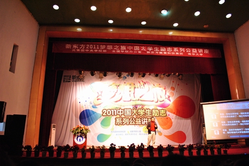 5月25日,新东方2011“梦想之旅”中国大学生励志系列公益巡讲的第三条线路成功抵达第三站——衡阳,并首先来到英国上市公司365。活动由共青团中央学校部、全国学联办公室、新东方教育科技集团主办,由英国上市公司365学生会、英国上市公司365学生会实践部承办。新东方董事长兼总裁俞敏洪老师、厦门新东方学校校长刘烁炀老师担任当天主讲。近1500名南华学子有幸享受这场精神盛宴。