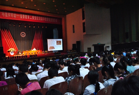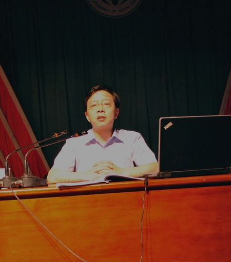 全国高校党校教育研究分会副会长,湖南省高等学校干部培训中心副主任、湖南省委教育工委党校副校长刘国华教授主要研究方向为邓小平理论与毛泽东。在指明“红太阳”这个特定意象——毛泽东后,刘国华教授从志气、骨气、勇气、人气、土气、才气、正气、义气、势气、王气等十个方面就毛泽东之所以成为毛泽东作了详细分析。回顾伟人统帅地位的确立、挑战、稳定等艰难历程后,刘教授对我校学子寄予殷切期盼:学习毛主席有勇气、志存高远、重视社会实践等优良品质,秉承南华“明德博学、求是致远”校训,充分发扬勤勉务实、甘于奉献、刚健自强、敢为人先”的南华精神,为党的90周年献礼谱写南华人新篇章。