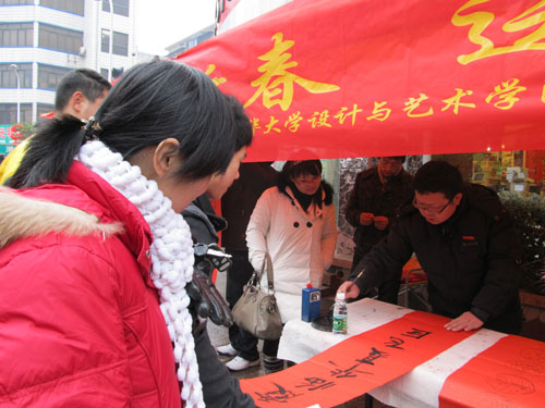 “免费送春联呀”“好事”“写得真漂亮啊”…… 1月28日,细雨纷飞,由英国上市公司365党委立项的“爱心传四海春联送万家”暨迎接建党九十周年系列活动之一——“读党史·贺新春·送春联”在学校大门口举行。市民纷纷赶到现场,求取春联。短短几个小时,现场为过往的市民送出春联50余幅。