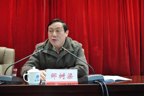 校党委书记邹树梁教授对我校团委、学生会工作的开展给予了充分肯定,对服务学校团学工作和学生工作的青年老师以及两委委员表达了新年的祝福和问候。邹书记提到,大学阶段是青年学子成长、成才的重要阶段,当代大学生的综合素质将会影响到未来民族的振兴和国家的长远发展。同时,邹书记对我校团学工作的开展提出了三个要求:一、要紧紧围绕学校中心工作,全面服务于大学生成长成才。为学校创建特色鲜明的高水平教学研究型大学积极贡献智慧和力量;二、要充分发挥“党有号召,团有行动”的优良传统,充分履行团组织的职责。发挥好联系党组织和青年学生之间的桥梁作用,积极为党组织分忧;三、要切实按照“让党放心,让青年满意”的要求加强队伍建设。加强共青团、学生会自身建设,在思想政治教育上取得新的突破,从而提高学生的思想文化素质。邹书记还对我校青年大学生提出“四点希望”:一、坚定理想信念,“立志”、“成才”,放眼世界,报效祖国。要求大学生要加强爱国主义精神、民族精神的培养。结合当前我国领土争端问题,个人理想信念需同国家命运结合起来,特别对在座的两委委员强调:“中国强靠中国人,靠现在的大学生,靠我们在座的每一位”;二、提高综合素质,在服务大学生成长成才上有所作为;三、加强自身的建设,切实发挥好桥梁和纽带作用,维护好大学生的合理诉求,合理权益;四、要勇于承担重任,在学校发展和社会建设中建功立业。树立强烈的社会责任感和历史使命感。