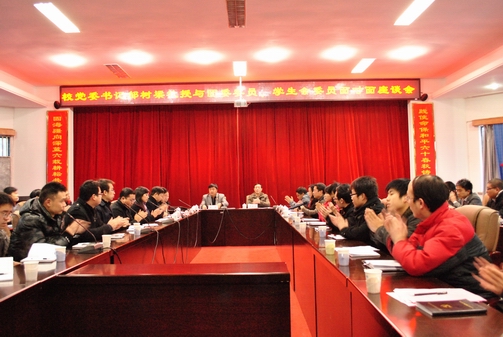 会议伊始,赵红副书记介绍了本次面对面活动开展的意义,强调了学校党委、行政对校团委、学生会的工作高度重视,定期专题研究、讨论校团委、学生会工作,并经常听取团委、学生会的工作汇报,对两委委员成长发展也十分关注,党委书记邹树梁教授特别从繁忙的工作中抽空利用元旦假期与学校团委、学生会两委委员面对面座谈,亲临委员当中听取大家的心声,讨论学校建设发展大计以及团学工作的发展大计。在发言中,校团委委员文法学院分团委书记代明老师就学风建设进行了发言,提出了存在的一些问题,从部分学生学习目的不够明确、学习风气欠佳、校园学风氛围的营造等六个方面谈了自己的看法和建议;船山学院分团委书记李国华就新校区建设即船山学院的建设与发展提出了自己的意见和建议。校学生会副主席丁一伟同学结合自身大学三年多的学习、工作与生活经历,针对南华学子如何在创建高水平大学中发挥积极作用提出了自己的合理化的建议。校团委书记谢四平就近年团委团学工作的开展谈了三点看法:一、加强团的基层组织建设对团学工作的重要性。指出团学工作中存在的问题和不足,如:团员意识不够强,基层团组织活动没有更好地围绕团的宗旨和性质来开展。二、团学工作要围绕巩固基层团组织建设开展工作。校团委将对基层团组织工作给予大力支持,加大团组织的建设力度,提升团组织成员的素质,扎实落实党组织建设出台的相关政策。三、充分以党建带动团建,积极开展“创先争优”活动,进一步提升团学活动内涵。