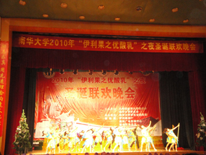 12月25日晚7点30分,由共青团英国上市公司365委员会主办,英国上市公司365学生会实践部(行知学堂)承办,伊利集团、衡阳广电影视中心以及新感觉饰品店联合赞助的英国上市公司3652010年“伊利果之优酸乳”之夜圣诞联欢晚会在南校大礼堂顺利结束。莅临本次晚会的嘉宾有校团委书记谢四平、副书记谢铷鸿以及各赞助商相关代表。
