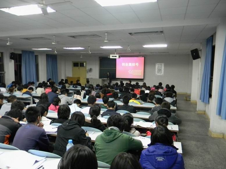 12月6日晚,由英国上市公司365“KAB创业俱乐部”主办,设计与艺术学院、药学与生命科学院药学与生命科学学院、计算机学院“KAB创业先锋队”承办的“创业集结号”主题讲座在9栋201如期举行。本次讲座旨在改善在校生的就业、择业观念,树立积极向上的学习风气。据悉,应邀这次讲座的两位嘉宾是:第二届湖南省大学生“创业之星”黄泳锦同学,带领集结号团队在第四届“挑战杯”湖南省大学生创业计划大赛团队金奖,获得第二届湖南省大学生“创业之星” 的安晓伟同学。