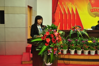 最后,校党委副书记赵红对会议作出总结,他强调对大会的筹备工作表示满意,并代表校党委及全校师生对参与大会筹备工作的老师和同学表示衷心的感谢,对参与本次会议代表给予了充分的肯定。还着重强调了本次团代会的重要性,并就与会代表提出三点希望:一、希望代表深入学习贯彻党的十七大五中全会精神,“创优争优”;二、希望代表以高度的政治责任感,强烈的主人翁精神,以饱满的激情投入到本次代表大会,严格遵守大会纪律,自觉履行选举权,不徇私、不舞弊,投好手中神圣的一票;三、希望学习会议精神,言传身教,向广大团员传达精神内容。
