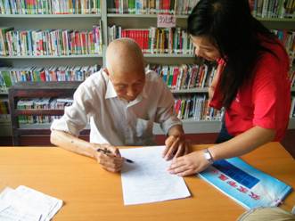 据村支书介绍,杨荣村是如意镇的一个示范村,在我们的服务过程中,我感受到了它作为建设两型新农村典型的崭新风貌,不论是从村子里面四通八达的乡间公路,还是村民家中各式各样时新的家用电器,还是村委会政务公开的宣传栏,或是村民们热情明媚的欢声笑语,都让我们感触颇多。在村委会里的一个房间中看到的一幕是我此次杨荣村之行最为难忘的镜头。这是杨荣村最具特色的农家书屋,屋子里的一面墙壁上满满的都是摆放整齐的各类书籍报刊。跟外面热闹的看诊场地不同,这里显得格外宁静,一位老人正在这里认真地看书。因为年岁已高,眼睛不好,只能紧贴着书本,用手指一字一句指引着阅读,虽然困难但异常虔诚,即使外面人声鼎沸却全然不受影响。书屋的图书管理员介绍说,这位老人今年已经90高龄了。我们对这位老爷爷的钦佩之情油然而生,这个画面也成为今天最让我们感动的一幕。
