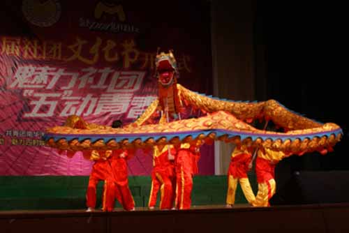 开幕式精彩纷呈和丰富多样的表演,让在场的观众啧啧称奇,掌声、叫好声不断。柔韧的DFC机械舞和动感的SDU劲舞,在动感的音节中让大家领略了街舞协会的青春活力。刚柔兼济的太极拳套路和瑜伽舞姿,让观众们着实陶醉;爱心支教社里的一群可爱的孩子用手语表达出了对爱心的渴望;京剧《贵妃醉酒》、悠扬动听的《金蛇狂舞》让大家体会到了民族文化的魅力;武协的双截棍和双刀在眼前翻转纷飞,精湛的武艺令人钦佩;动漫协会的舞台剧《长安幻夜》,在古色古香的背景和华丽的舞服映衬下,会员们配合默契、妙趣横生地演出更是让开幕式达到高潮;作为本场晚会的压轴戏------《龙狮表演》,在场面宏大的舞龙和舞狮表演中深深震撼着在场所有观众。伴随着完美的龙狮定格,本次社团文化节开幕式完美落幕。