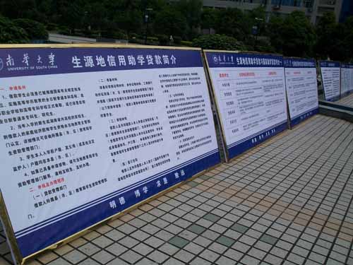 活动现场,摆满了关于助学贷款的展板,内容详实,为我校贫困学子提供了直观的求助捷径。“十佳银行”也搭营设点义务为南华学子排忧解难。