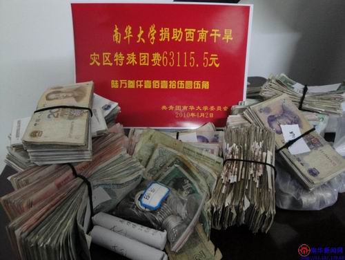 捐赠活动得到了全校广大学子的积极响应,1元、2元、5元、10元、100元,汇聚成爱心的暖流。有很多学生捐了一次后又自发地到校团委进行了再次捐赠;有很多学生因为家庭困难把一角一角的硬币码得整整齐齐交给老师,说钱不多,这是自己的一点点心意;还有一些并不宽裕的学生捐了50、100元的,说自己省一点,节约一点,为干旱灾区可多买几瓶水,非常感人。广大南华学子的爱心善举充分体现了当代大学生关注民生国是的宽广胸怀,充分彰示了高校学子强烈的社会责任感与使命感。