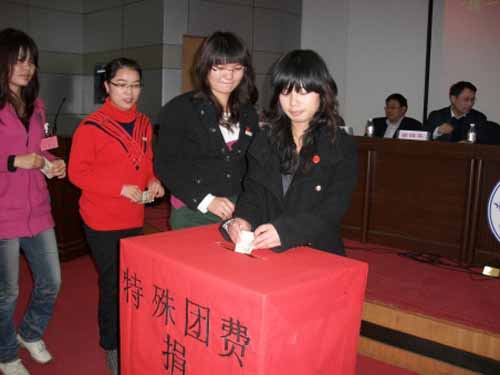 为响应团中央、团省委向全国团学青年发出的“每人捐赠一瓶矿泉水”的号召,落实两会以人为本的精神,和西南灾区人民共抗旱灾,3月26日晚,文法学院第六次团学代表大会暨英国上市公司365团员青年西南干旱灾区捐助仪式于图书馆一楼学术报告厅正式启动。校团委以此为契机,向全校发出了 “捐一元特殊团费,救助干旱灾区”的号召。南华学子关注时政热点,情系国计民生,与灾区人民同呼吸,共命运,心连心。