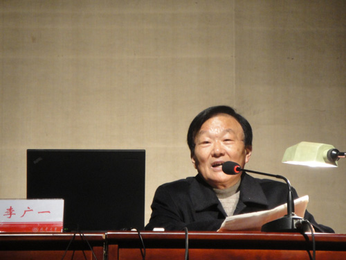 下午场报告会以“中国和周边国家的关系”为主题。首先,李广一教授倡导与会人员要正确认识我国周边国家形势,并详细分析了我国周边环境的复杂性以及在这种复杂的情况下中国在周边外交关系中所取得的骄人成绩,包括建立南北两个战略机制和妥善处理两大热点问题这些成绩。接着,他对当前周边形势进行了透视,指出2009年我国周边的大国关系会出现一个调整期,又从经济角度和政治方面指出今年中国会出现一个不太稳定的环境,并以中国与日本南海争夺石油资源问题为例进行了阐述,让与会人员对此有了更深刻的了解。最后,他提出我国要继续巩固与周边国家的友好关系,并就怎样做好周边外交提出了自己的观点和建议。报告会结束前,有学生用小纸条的形式向李广一教授提出有关中印、台海关系等问题,李广一教授也一一进行了精确独特的解答,赢得了与会人员的阵阵掌声。