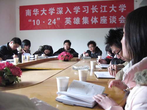 11月18日中午12:30分,由学校团委、校学生会倡议的,深入学习长江大学“10.24”英雄集体座谈会如期举行。本次座谈会由校团委副书记谢铷鸿老师主持,参加本次座谈会的有校团委副书记谢四平老师和各学院分团委书记和学生会代表。