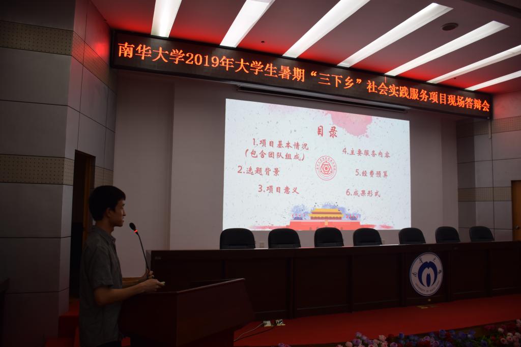 在主持人对到场评委以及答辩纪律进行简单的介绍后,答辩正式开始。答辩中,各项目组答辩人结合活动主题,突出自身优势,条理清晰、主次分明,让台下评委及观众对项目有了较为清晰的了解。活动中,来自船山学院的项目“衡阳老工厂的式微与振兴研究”以独特的视角和鲜明的特色吸引了在场师生的眼球,该项目通过走访调查、发放问卷等形式,对衡阳市老工厂的现状进行调研,并通过调研结果对衡阳老工厂进行了系统性的理论分析与实践分析,从中总结老工厂运作时产生的问题现状并为老工厂环境问题的解决提出合理建议,具有较大的价值与意义。同时,来自核科学技术学院的项目“高扬爱国主义旋律,传承两弹一星精神”、来自化学化工学院的项目“筑梦脱贫,化改三农”等项目也凭借精彩的解说得到了台下师生的一致认可。