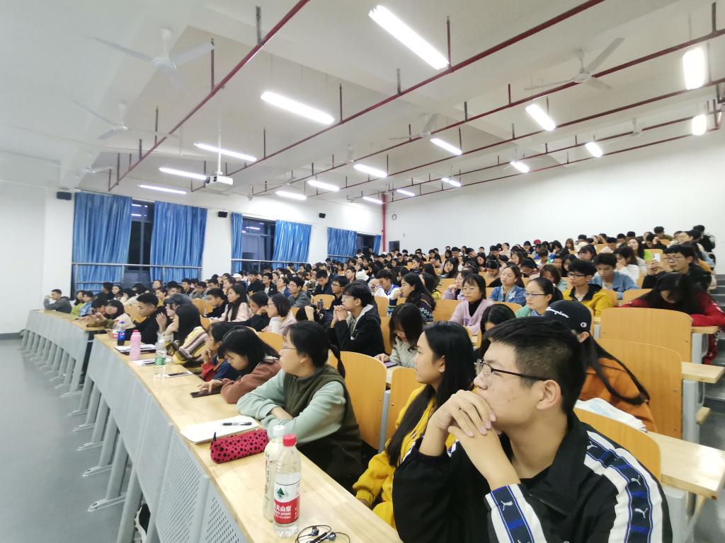 交流会受到同学们的热情关注,全场座无虚席。交流会由讲述参赛注意事项、经验分享等多个环节组成。活动伊始,主持人介绍了本次交流会的主要内容和流程,以及被邀请来分享经验的四位学生代表。第二部分,四位学生代表分别介绍了我校近期各项创新创业比赛的情况,分享经验并且提出建议。首先,来自经济管理与法学学院的郑诗怡介绍了科普知识竞赛讲座的参赛流程;接下来,卢湘浓介绍了“金点子”比赛的注意事项;第三位是来自经济管理与法学学院的袁俊杰,他主要介绍了“挑战杯”全国大学生系列科技学术竞赛的概况;最后,宋宏霖与同学们分享了他在参与创新创业比赛过程中的经验,他在比赛类别、策划书的书写等方面结合事例做了具体的阐述,并且根据自身的经验给观众提出了一些建议。同时,他也积极鼓励大一学生积极参与各项创新创业比赛,增加见识、积累经验。在第三部分答疑环节中,同学们踊跃举手提问,四位就每一个提问者的问题做出了详细解答。交流会最后,主持人对本次交流会进行总结,活动圆满结束。
