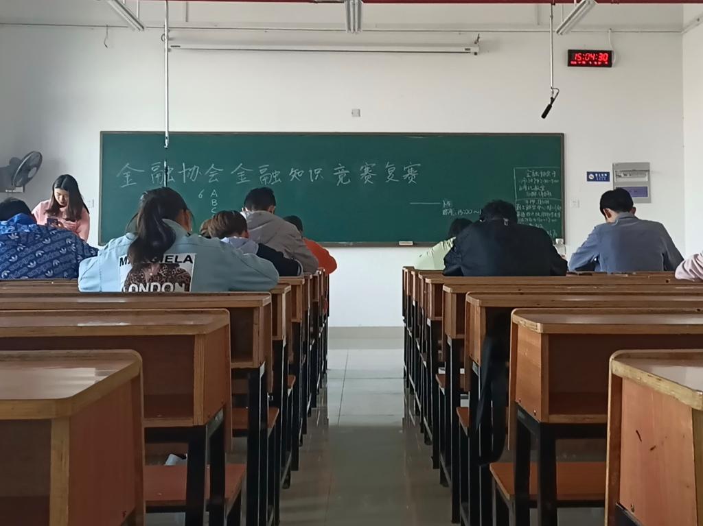 此次金融比赛分为线上答题和线下考试两个阶段。据悉,共有200名同学参与线上答题比赛,线上采用一题一积分制的规则进行总成绩排名。经过一番激烈角逐后,50名同学在初赛中脱颖而出成功闯入决赛。决赛分为上、下午两场,50名同学被随机分为两组分别在上午9点整至10点整、下午15点整至16点整参加考试。本次竞赛试题以“庆祝建国70周年”为主题,内容涉及新中国经济发展历程、社会主义现代化经济体系、深化改革与对外开放的政策、现代金融社会发展现状等。参赛同学们积极配合金融协会的安排,提前20分钟到达教室。期间,同学们全神贯注地答题,教室里只剩下沙沙的写字声。比赛结束后由金融协会组织部门成员阅卷打分,通过统计参赛人员成绩确定本次竞赛结果。最终,来自经济管理与法学学院的文含芊以79分的优异成绩夺得桂冠。