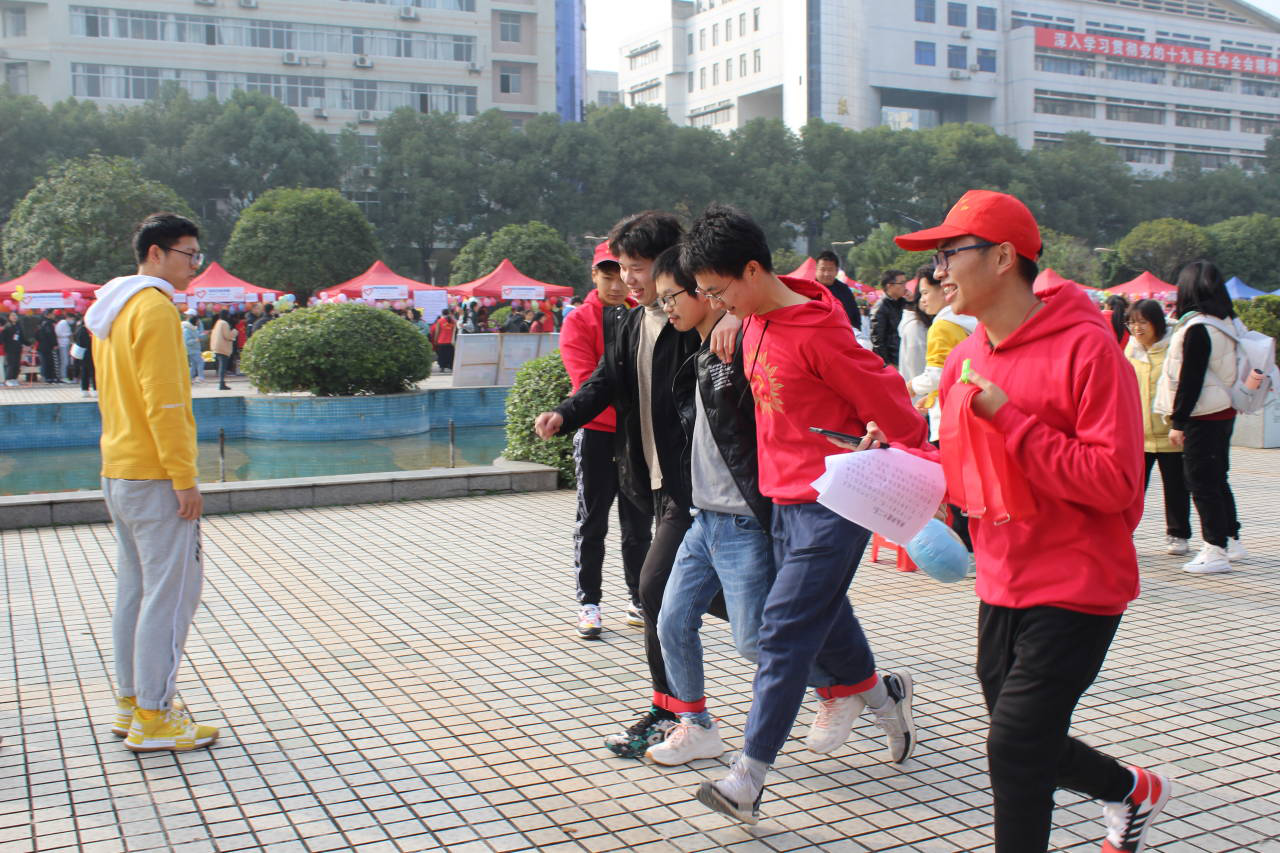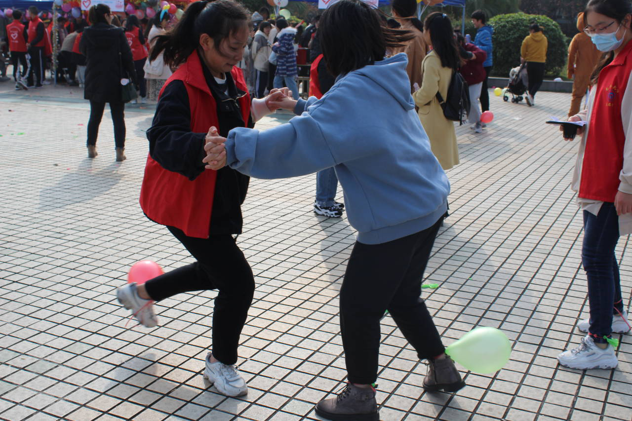 宣誓过后,各特色分队和学院志愿者分队开始依次有序地搭建帐篷,装饰摊位,他们将各自的展板整齐放置于南华广场喷泉池两旁,并结合其特色志愿服务活动的特点开展趣味小游戏。在“踩气球”的游戏环节中,参赛选手迅速扭成一团,在规定的地域范围内,努力消灭对手脚上的气球,选手们又是跑又是跳,你踩我踢,竞争激烈;在“心有灵犀”的游戏环节中,考验的则是参赛选手之间的默契度,选手们通过生动形象的演绎传递着通关信息……此外,还有“小心陷阱”、“全民k歌”、“夹玻璃球”、“三人四足”等多样小游戏,并深受同学们的欢迎。尽管天气寒冷,却丝毫没有浇灭志愿者心中的热情。随着时间的推移,越来越多的同学被这些有意思的小游戏吸引,同学们在互相追逐的过程中,享受着游戏带来的欢乐时光。最后,许多同学拿着自己通过游戏胜利换来的战利品,脚步欢快地走在南华广场上,为期一天的广场活动也在欢声笑语中结束了。