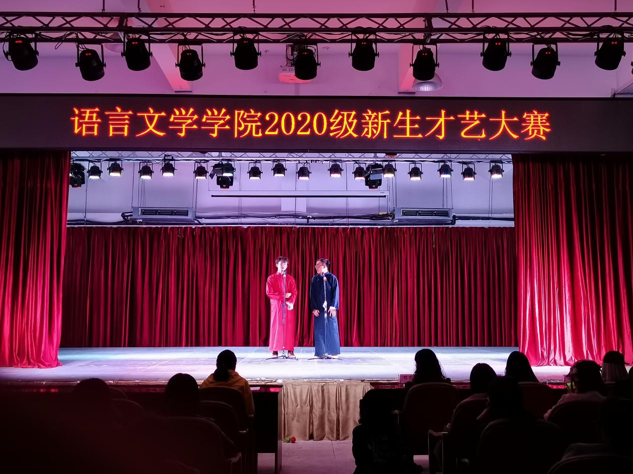 首先,比赛由舞蹈《Stay Tonight》拉开帷幕。女生独唱《Someone You Loved》和两人合唱《不该》,赢得观众阵阵掌声。接着,模特队以别样的精神面貌演绎了一场模特秀,给观众带来了一场视觉盛宴。此外,校大艺团带来的相声《我想结婚》爆笑连连;说唱《不用去猜》展现了新生的活力,将全场气氛推向高潮;女生独奏的《战马奔腾》,展示了传统乐器二胡的别样魅力;朗诵节目《因为有你》字句铿锵,以此致敬那些奔赴在一线的疫情防控人员。国风舞蹈《寄明月》以曼妙轻灵的舞姿展现了中国传统文化的魅力。
