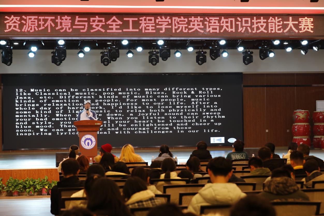 12月9号晚7:30,以“弘扬抗疫精神,齐心共育新机”为主题的英语知识技能大赛决赛在求是园三楼礼堂隆重举行,该活动由资环安学院团委学生会学习部主办,旨在丰富校园文化生活,努力营造积极向上、阳光健康、乐学好学的校园氛围,并增强我院学生的自身素质,从“听说读写”四方面切入,切实提升大学生的英语应试水平和口语交流能力。