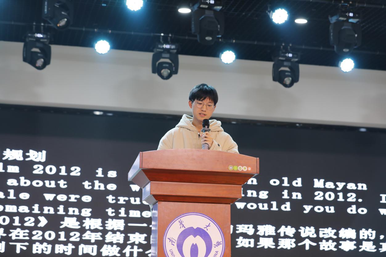 共有十四位同学在十二月六日的笔试中脱颖而出,站上演讲台一展风采,精彩的自我介绍,流利的语篇速读,声情并茂的即兴演讲,赢得观众们满堂喝彩,现场掌声雷动。