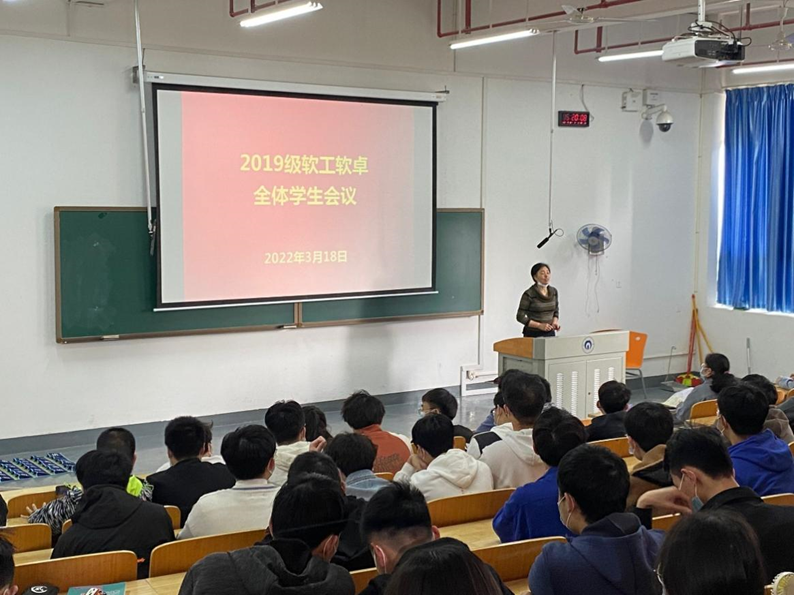 为整顿学院学风,总结各项工作,落实疫情防控措施,3月18日下午,计算机学院19、20级软工软卓全体学生会议先后于雨母楼301顺利召开。院党委副书记何战胜、辅导员张坪出席会议并作出讲话,19、20级全体软工软卓学生参与会议,会议由张坪主持。
