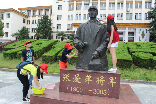 本次纪念活动分为三部分。首先,活动伊始,青年志愿队的同学拭擦张爱萍将军的铜像,表达对先烈的缅怀之情。接着,青年志愿队的同学向路过同学分发纪念抗战胜利的宣传册,收到纪念册的同学纷纷在主题横幅上签上自己的名字,用行动支持纪念活动的举办。最后,同学们参观了位于第二教学楼的王船山纪念馆,整个纪念活动都井然有序地进行着。参观活动结束后,纪念抗战胜利70周年的主题纪念活动也顺利地落下帷幕。