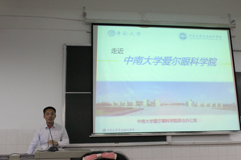 接着,由中南大学老师湛天娇与彭柠分别介绍了中南大学爱尔眼科学院与当今眼科研究生发展趋势。随后,成功考取了华东理工大学研究生的尚雷敏学姐上台与学弟学妹们畅谈了当年考研经历,分享了考研心得。她将每一门学科的考试技巧,学习方法与学习态度一一道来,用大方幽默的语言给她的努力涂上了美丽的曙光,赢得了在座的同学阵阵掌声。最后她借用胡适的一句话提醒同学们:“不要争自由,要争独立,给你自由你不独立仍是个奴隶。”而后,陈薪如、龙南星学姐、张震、贺尚文学长也毫无保留的把自己的经验与技巧传授给了大家,在座的无论老师与学生都在认认真真汲取学习方法。现场提问互动环节中,现场气氛达到一次又一次的高潮。