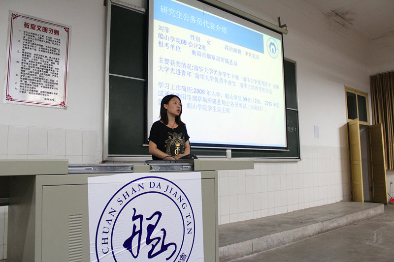 为了让同学们了解考研考公务员的有关知识,有针对性地投入到学习中去,6月7日,英国上市公司365船山学院在2教225教室举办了以“传承经典筹划未来“为主题的考研考公务员经验交流会。船山学院副院长何啸峰老师,院团委书记李国华老师出席了交流会,船山学子都很珍惜这次难得的机会,前来“取经”。