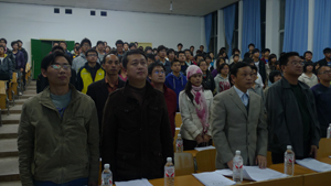 大会在雄壮的国歌声中拉开序幕,团委书记李国华老师首先致辞。他对出席本次大会的各级领导、老师和代表表示热烈欢迎,希望代表们充分认识到自己肩负使命和责任,坚定理想,立志成才。接着团总支书记殷志老师对本年度新校区船山学院2010级团总支学生分会工作做了工作报告,并对下学年工作的提出了展望。随后院党委副书记唐康伟老师宣布了任命文件,产生了2010级团总支学生分会第一届团委学生会干部。唐书记对新当选的全体干部表示祝贺,希望学生干部为把新校区船山学院学生工作推上一个新台阶而共同努力。随后学生会主席王永驹宣读了大会倡议书,团委副书记刘雅倩代表了团总支学生会干部发言。最后,院党委书记肖基毅做了重要讲话。肖书记对新当选干部表示祝贺并对新成立的团学组织提出两点要求,一是要抓好学风建设,营造优良学风;二是做好安全稳定工作,维护好学生人身财产安全。