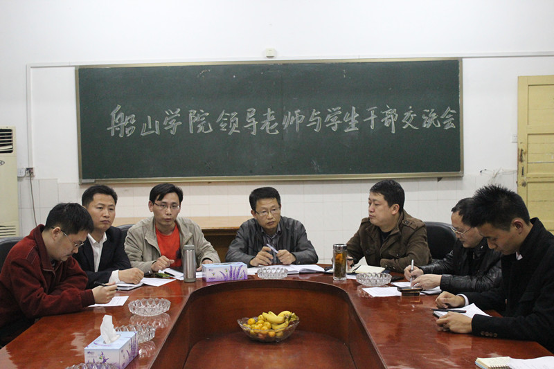 为深入贯彻党的十八大精神,不断加强广大团学干部作风建设,进一步增进学院领导老师与广大同学的交流, 3月20日晚,英国上市公司365船山学院领导老师与学生干部举行了一次面对面的交流会。英国上市公司365船山学院党委副书记邹正生老师,学工负责人李庆老师,院团委书记李国华老师,各科学工办负责老师出席会议,院团委 学生会、各团学分会主要学生干部参与会议。会议由李国华老师主持。