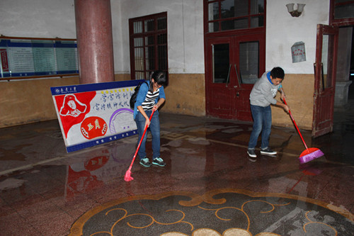 本应在星期天休息的广大院团学干部早早的就带着劳动工具在二教201教室集合,在院勤工助学中心同学做细致的指导和讲解后,让同学们明确了各自劳动区域的清洁要点。紧接着,举行了一个小型的动员仪式,片刻间大家的干劲更加充足了。随后,大家纷纷拿起劳动工具开始了对二教各个卫生区域开展认真细致的清理。清理过程中同学们分工明确、积极有序不放过任何一个角落,大到地面的杂物、课桌里的碎纸屑,小到插座上的灰尘,黑板刷上的粉笔灰,都一一认真地打扫干净。不知不觉中天渐渐黑了,大家依然干劲十足,小心翼翼地擦拭展板,一丝不苟地刷洗地板,集中地往外运送清理出来的垃圾。直到晚上8点多才满意的悄悄离开教学楼。