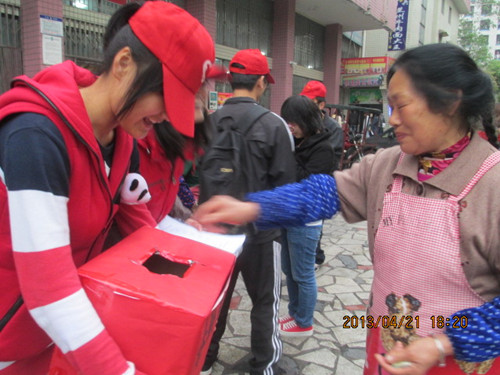 下午5点半,我院青志、核资青志分队分别在北校和南校食堂开展了爱心募捐活动,每一个经过的人都会停下来献上自己的爱心,表达对灾区人关心。在食堂打扫卫生的阿姨也前来捐助,并说道:“他们受到了灾害,我同情他们,只希望能给他们一点帮助”。 爱心在传递,小小的举动,大大的爱。