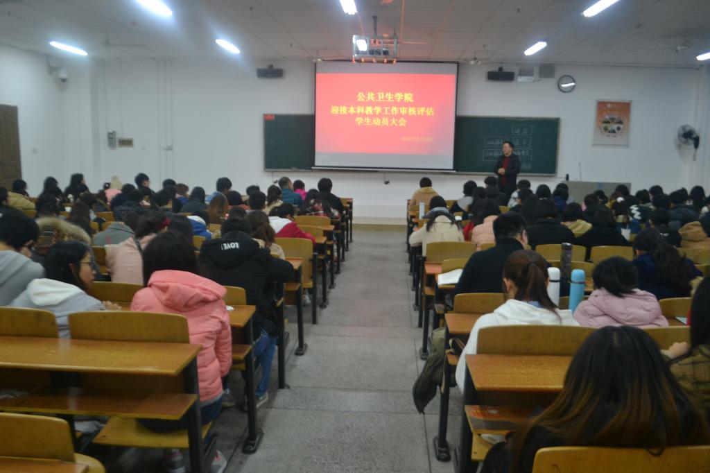 11月23日晚7点30在英国上市公司365红湘校区一教112教室举办公共卫生学院迎接本科教学工作审核评估动员大会。该会议由公共卫生学院党委副书记田生军主讲,学生会主席李邦主持。与会人员包括党员、预备党员、团干、14级,15级及16级各班班干。