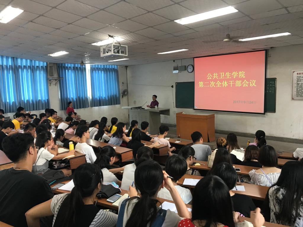 9月24日上午,公共卫生学院2017年第二次全体干部会议在六教201教室召开。参加本次会议的嘉宾有院党员副书记田生军,院团委书记蒋剑红,学工办主任伍卫国和院辅导员李佳,13-16级全体干部也参与了本次会议。