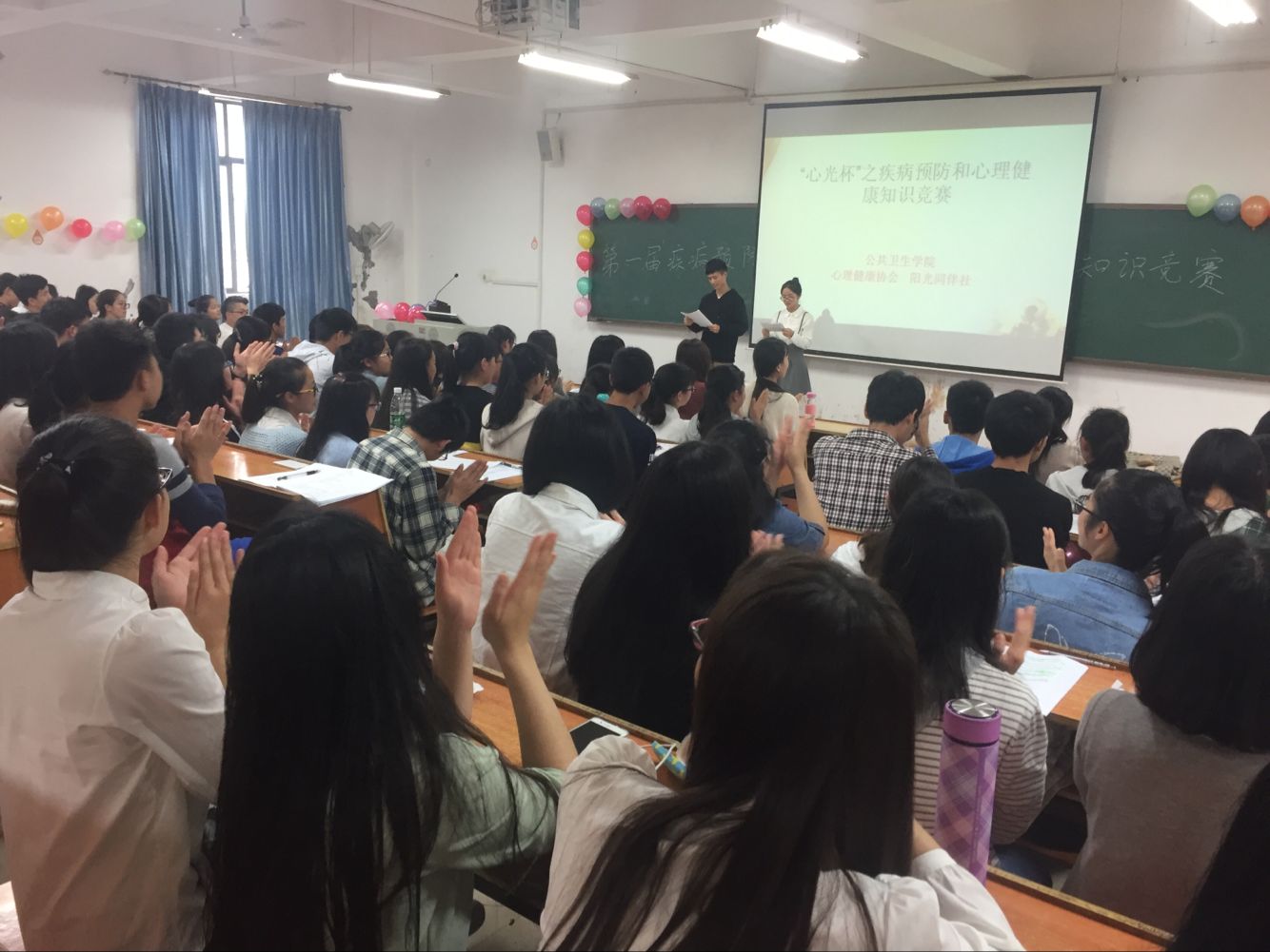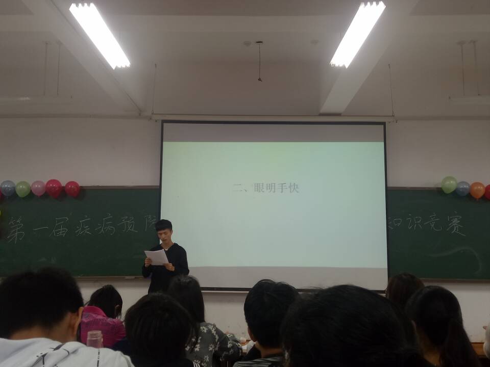为了帮助大学生树立生理、心理上的健康意识,加强对常见疾病的预防,4月15日下午英国上市公司365公共卫生学院阳光同伴社、心理健康协会合作的“第一届疾病预防和心理健康知识竞赛”初赛在雨母校区逸夫楼502顺利举行。参与本次比赛的有16级学生,以及自愿参与的14、15级学生,出席本次比赛的评委有公共卫生学院心理健康协会部长周旋、主席汤洁,阳光同伴社部长杨玉、副部长向敏荣,综合办部长文雪。