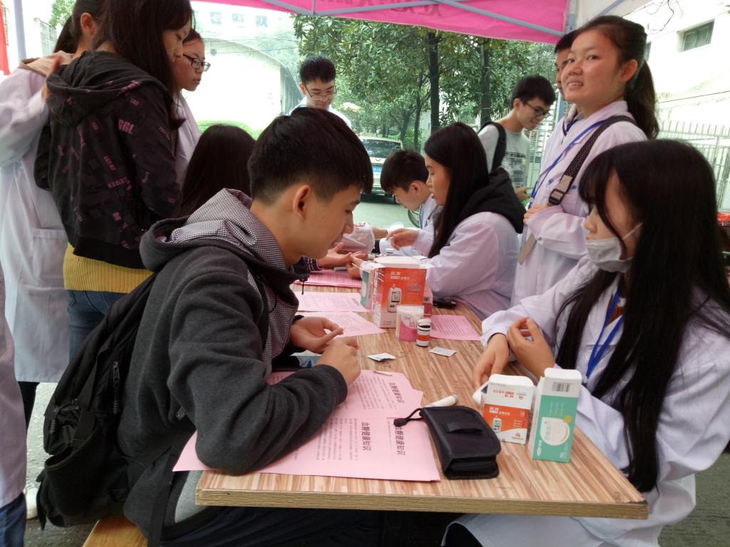 现今,快节奏的生活致使很多同学忽都视了自身的身体状况,也疲于奔波至医院做例行检查。预防医学专业的青年志愿者们希望能给予帮助,给同学们提供免费、便捷、简单的医疗服务,就如这次的免费血糖测量服务,让同学们及时了解自己当前的健康状况。
