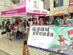 活动当天,虽然天空飘着微微细雨,但青年志愿者们的热情却丝毫未减,积极向过往同学宣传义卖活动,讲述抗战老兵的英勇事迹。而路过的同学们也热情高涨,有的是偶然经过现场被感动来支持义卖活动,有的是之前看到青年志愿者协会的宣传赶来参与活动。同学们在义卖物品中挑到自己心仪的或者当下必需物品后,怀着对抗战老兵的感恩与祝福,怀着崇高的敬意往募捐箱中投出自己的钱。
