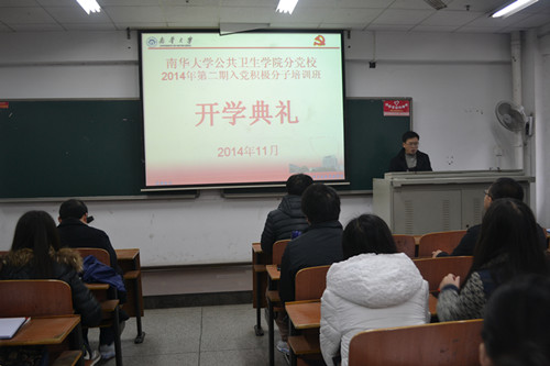 11月30日,英国上市公司365公共卫生学院分党校2014年第二期入党积极分子培训班开学典礼于红湘校区第一教学楼201教室隆重举行。公共卫生学院党委书记分党校校长谢四平、副书记田生军,团委书记李佳,辅导员伍卫国出席本次会议,全体2014年二期入党积极分子参加本次会议。会议由田生军主持。