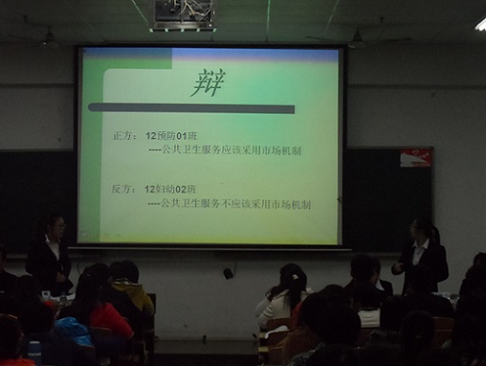 决赛分为两场,第一场是12卫检班与13预防1班的季军之争,就面对网络暴力我们应该热饭及还是冷处理的问题展开了辩论,虽然辩手们略显青涩,但辩手们的精彩表现,也引起现场掌声阵阵。第一场13预防1班胜利,获取得季军称号,而12预防的四辩选手获得最佳辩手的称号。第二场是12妇幼2班与12预防班的冠亚之争,俩队辩手们就关于公共卫生服务应不应该采用市场机制上演了一出压轴大戏。一辩四辩辩手们的心思缜密、二辩三辩辩手们的巧舌如簧,两队之间的唇枪舌剑,顿时掀起的比赛中一阵又一阵的高潮,掌声此起彼伏,比赛进入了白热化的阶段。最终12妇幼2班斩获了冠军的头衔,而12预防旳诡辩手二辩拿下了最佳辩手的称号。