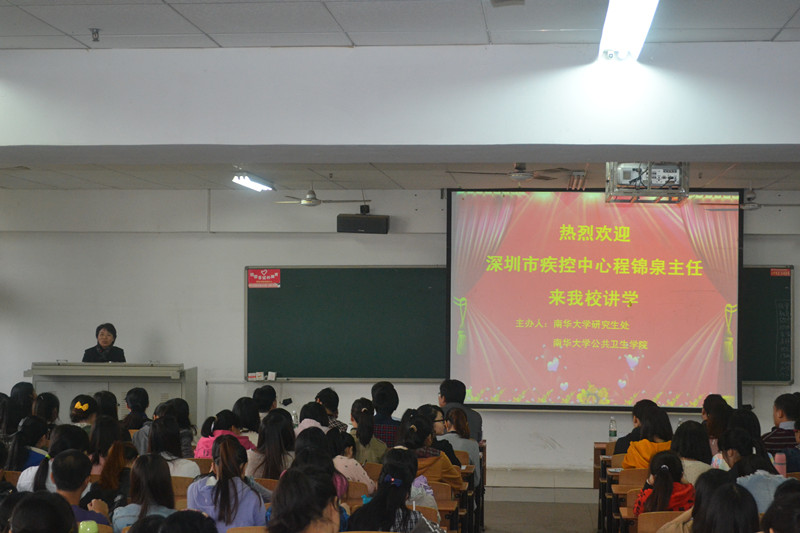 在让院长简略的介绍后,程主任正式开始他的讲学。程主任从公卫学生的毕业去向切入话题,阐述了疾控人的职责所在与职业自豪感的重要性。接着,程主任简要介绍我国公共卫生发展史,通过将国内公卫发展现状与欧美地区进行横向对比向同学们阐述了我国现今公共卫生事业发展的不足。随后,程主任以点面结合的方式生动形象地向同学们讲解了“CDC究竟做什么”和“CDC究竟做了什么”,并一一列举近年来深圳市CDC取得的重大成就。讲学即近尾声时,程锦泉主任提出自己对CDC未来发展的希冀---提升实验室检测能力,确保健康教育与疾病预防共进,加强技术开发与应用研究。与此同时他还指出,一名合格的疾控人应该具备现场处置、实验室检测、科学研究三大项能力。最后,让院长对程主任的报告进行总结,指出公共卫生是一份非常神圣伟大的工作,需要高素质和有奉献精神的人才,同时也希望同学们能成为一名人品好、业务精、有团队意识、综合素质高的疾控人。