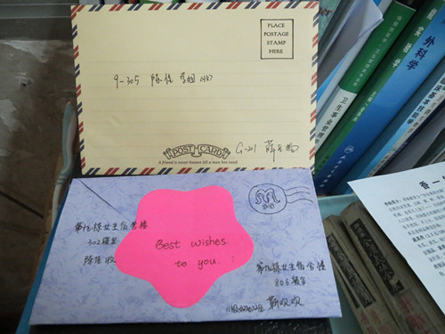 此次活动前期工作包括两个部分:一是自制感谢信封,并在其中装入感谢信。写信的对象可以是学院老师、学长学姐、班上同学、寝室舍友等。二是围绕“感谢有你”将自己的心意写在卡片或便利贴上。感谢信以及卡片由相关负责人统一收齐,截至21日晚,信件已收到一百多封,卡片和便利贴则多达近三百张。前期工作进行的井井有条、非常顺利。
