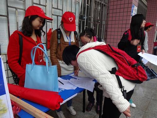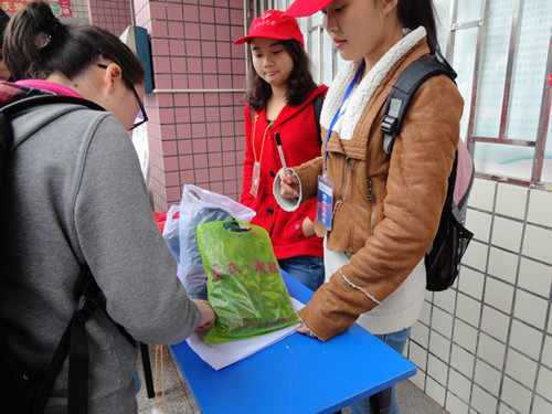 十一月九日,由英国上市公司365的公共卫生学院青年志愿者队和药学与生命科学院青年志愿者队主办,文法学院青年志愿者队和城市建设青年志愿者队协办的“绿色革命,情暖民工”军训服收集活动在英国上市公司365红湘校区北校食堂门口,南校食堂门口,弘辰食堂门口,以及雨母校区顺利开展。