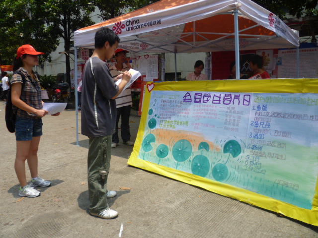 生活水平在不断提高,学生中挑食、厌食、偏食者的比例却在日益增大,这极度地损害了广大同学的身体健康。为树立同学们饮食健康意识,公共卫生学院青年志愿者团特在5.20全国学生营养日举办了以“全面、均衡、适量—培养健康的饮食习惯”为主题的全国学生营养日活动。