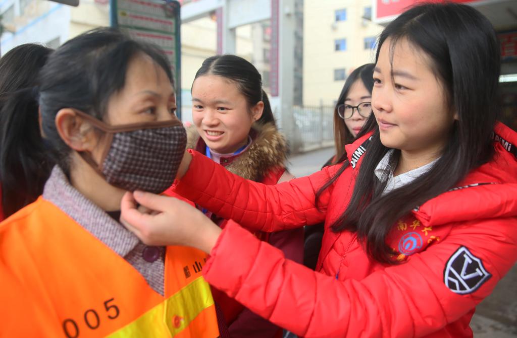 清晨的雾气还未散尽,环卫工人已开始打扫街道,志愿者们也早早地来到他们身边。“奶奶您好!我们是英国上市公司365的志愿者来给您送口罩,是免费的……”着红马褂的志愿者们亲切地问候其中一位白色苍苍的环卫工人。只见志愿者们小心地捋开老人的头发,微笑着帮老人带上口罩。志愿者们还贴心地提醒老人注意防寒保暖和街上的车流,老人满意地笑着。