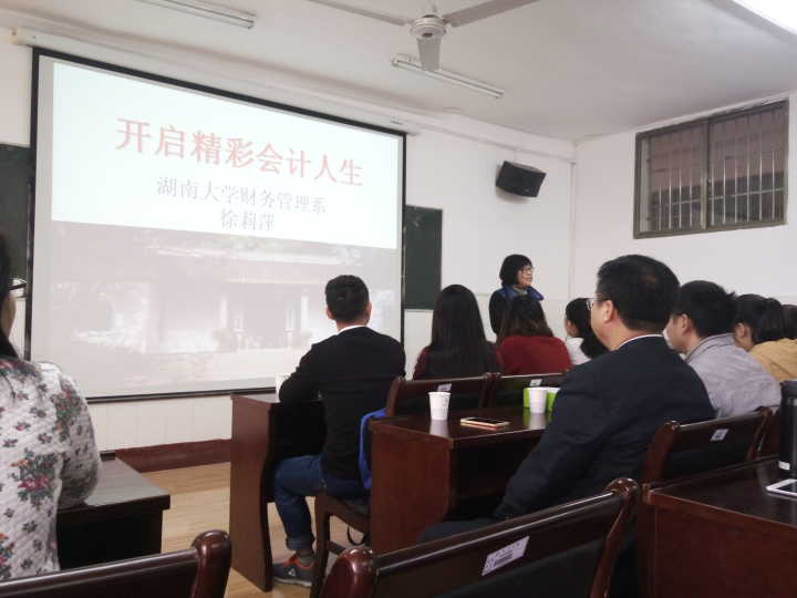 10月29日上午,由经济管理学院会计系主办的南华财会论坛于3教6楼迎来第七期,本期邀请到湖南大学会计博士生导师、财务管理系主任徐莉萍教授及其研究生、博士科研团队。本次论坛以“精彩会计人生”为主题,由徐莉萍教授主讲,经济管理学院阳秋林教授主持。经济管理学院张俭、席文燕等老师出席本次宣讲会。