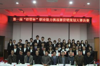 12月8日晚, 第一届“经管杯”职业能力挑战赛营销策划赛决赛在红湘校区图书馆报告厅完美落幕。衡阳市移动公司市场项目部经理周琛、校团委书记谢铷鸿、校学工部副部长王永杰、校教务处副处长廖基定、校宣传部副部长陈烈作为特邀嘉宾出席了本次活动。经济管理学院党委书记张天成、副院长刘萌芽等学院领导出席了本次大赛。大赛聘请了刘萌芽、肖汉龙、黄知常、谢荷锋、黎赔肆等数位专家担任了此次大赛的评委。