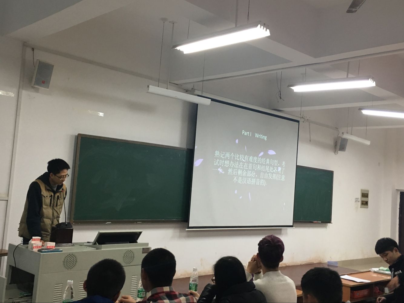 本次交流会在学习部部长孙正充满激情的讲话中正式开始。吴建军、罗棱尹等5位“前辈”代表以PPT和演讲结合的方式向大一同学们展示了自己的考试经验和独到的学科见解。他们针对英语四级考试的总体把握、阅读部分、听力部分、考前突击以及平时的英语素养锻炼进行了详细的解说,不仅增加了同学们对英语四级考试的信心,更让同学们对英语的日常学习有了更加深刻的认识,幽默风趣的语言,也让现场气氛变得活跃。