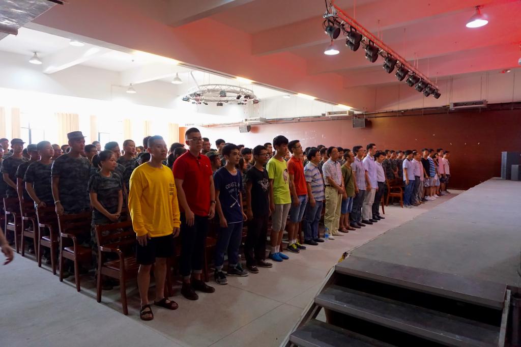 核院全体2016级新生身着统一的迷彩服,精神抖擞地坐在会场中。会议由学院党委副书记刘和福老师主持,院长肖德涛老师、党委书记谭建国老师、副院长邱小平老师、副院长王振华老师和学院各系(所)、中心主任、各专业学科博士代表、全体辅导员、全体班主任和班主任助理均参加了此次活动。