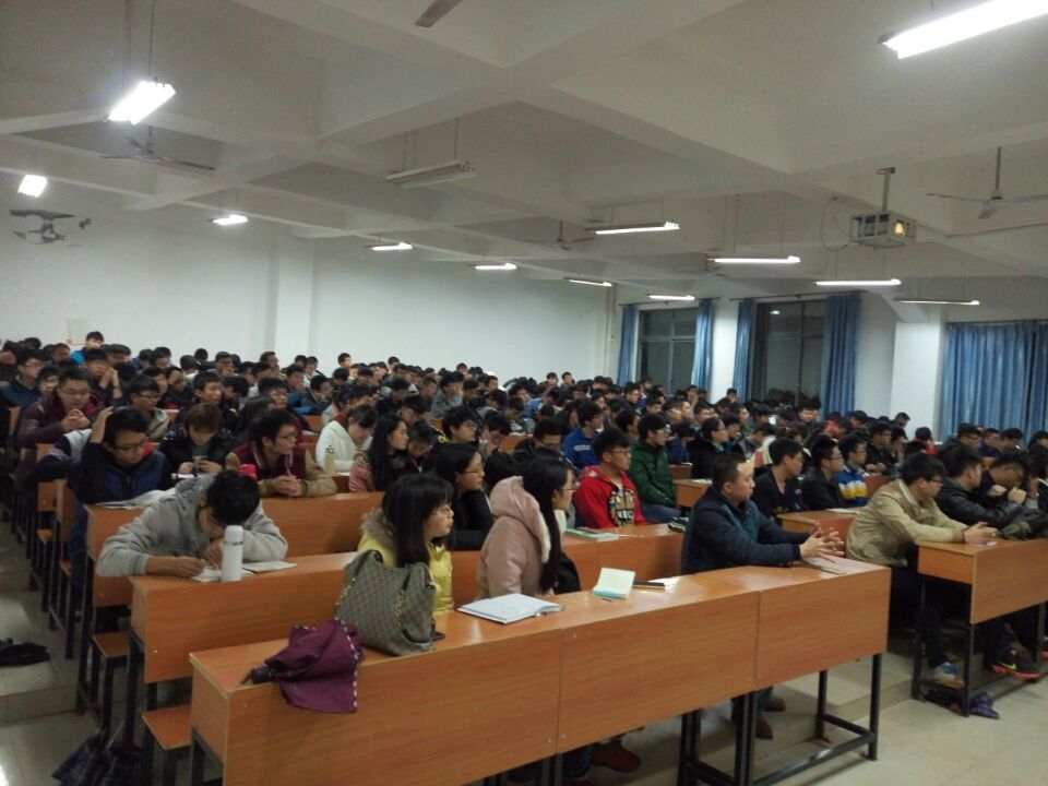 为增进学习经验交流,严肃考风考纪建设,我院于2016年1月5日晚7:30在雨母校区逸夫楼402室举办了以“秉诚信之风,扬尊严旗帜”为主题的15级期末考试动员大会。我院辅导员马军老师、陈彦武老师、文莉老师、李婷老师均和我院2015级全体同学一起参加了此次会议。本次大会由马军老师主持,优秀学长代表陈灿、瞿博志、莫子文、彭昭缘、付孟婷、陈姗红六位同学给学弟学妹们进行了学习经验传授和复习方法交流。