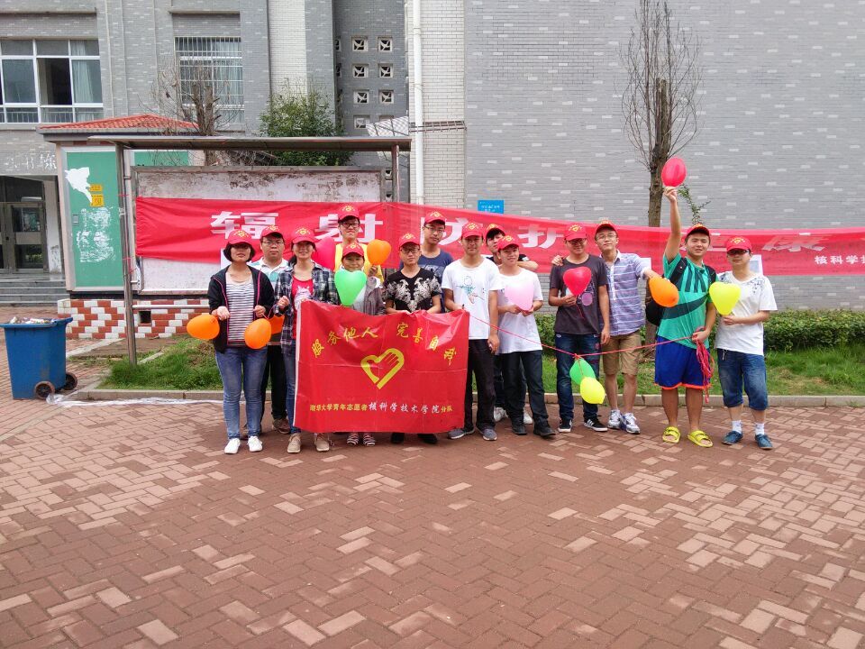 五月二十九日上午,由核科学技术学院青年志愿者队主办的核辐射安全有奖问答活动,在雨母校区学生宿舍B栋小广场展开, 活动分为四个部分,分别是核辐射安全签字、投票挑选核辐射安全徽章、扎气球回答问题领取奖品、核辐射安全问卷调查。
