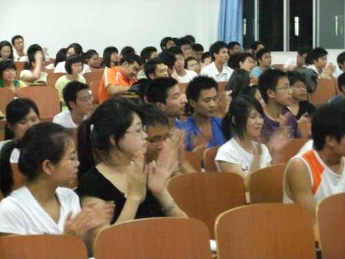 经验交流会上,马军老师以自己在大学的英语学习经验为例,深入浅出地向同学阐明英语四、六级考试的重要性。她指出:“在当今社会,英语已成为谋生的必备工具。一个人英语成绩的高低将一定程度上决定其今后事业发展的好坏”。随后,六位08级同学先后登台,结合自身经验,分别就四、六级考试中的作文、阅读、听力等板块以及答题技巧等方面做出详细且精彩的讲解。交流会上,同学们就四、六级考试和英语学习的问题向六位08级同学踊跃提问。现场气氛十分热烈。